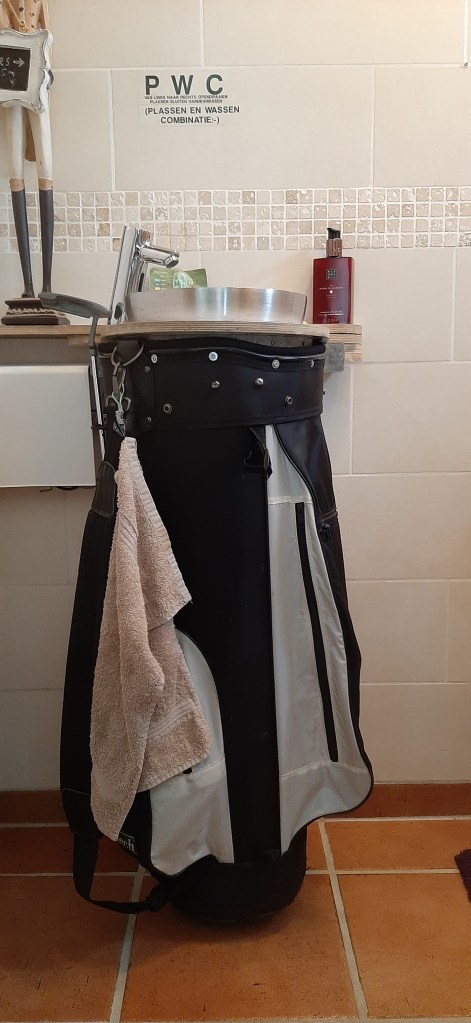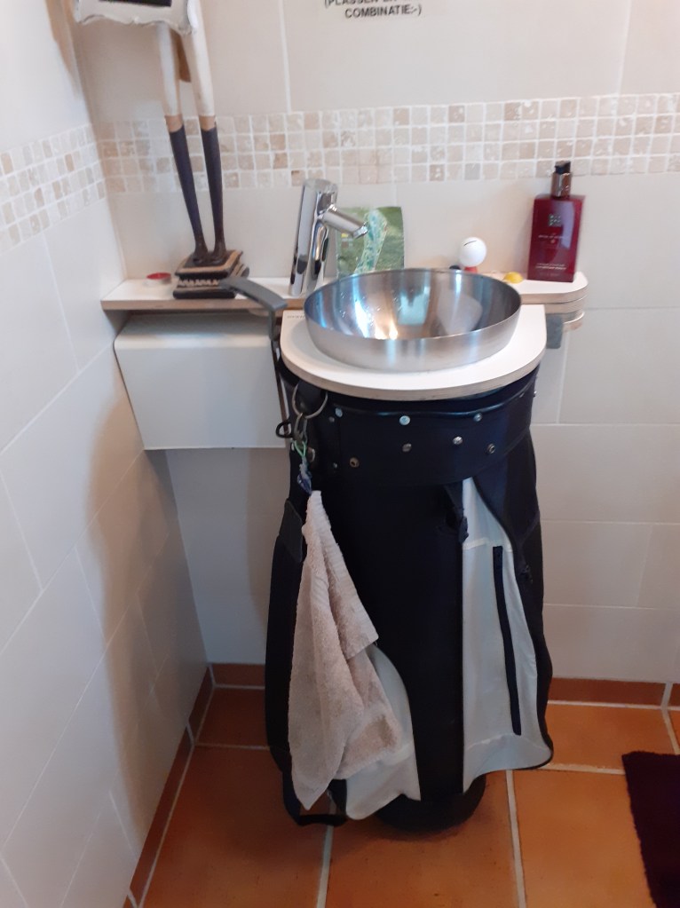 Als je nu op het toilet komt en je ziet daar die golftas staan, dan krijg je direct een glimlach op je gezicht; je draait de golftas weg, ontspant en denkt aan die fantastische bal. Leuk toch? (bekijk hier het filmpje op Youtube)