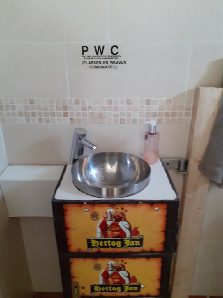 Je opent de deur naar het toilet en er staan vier kratjes op elkaar. Zodra je deze opendraait, kun je het bier weer lozen.